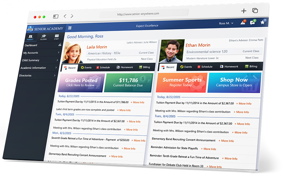 WEB APP REDESIGNThe official parent portal for Ascendance! Specifically made for parents/guardians with students in independent K-12 schools. It’s secure, feature-rich, and robust enough to handle the day-to-day complex operations of your school while giving each user a custom experience through personal settings and role-based accessibility.